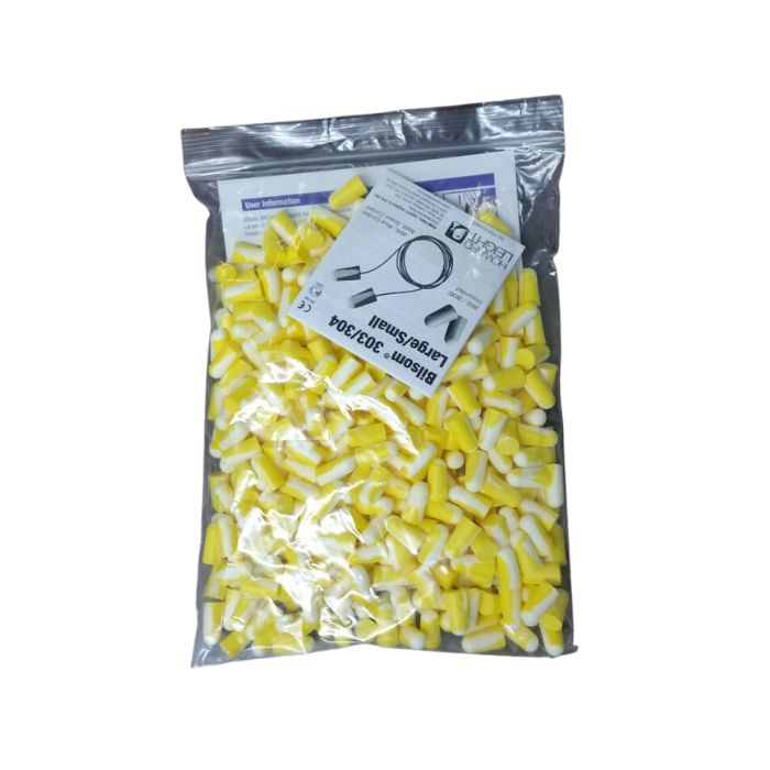 These replacement plugs are yellow, made of blissom and come in a sealed packet of 200 pairs.